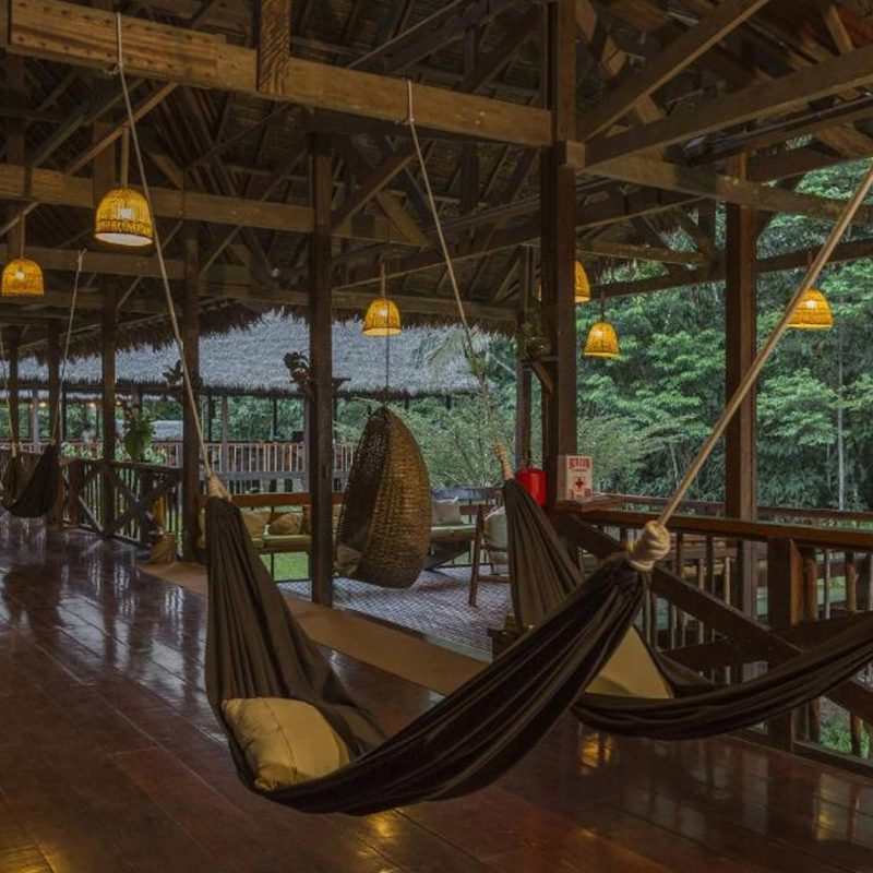 Tambopata Research Center lo espera – un espacioso eco-albergue boutique, con bar, centro de masajes y un variado set de actividades y excursiones en el corazón de la Reserva Nacional de Tambopata, siendo el único albergue dentro de la reserva rodeado de docenas de nidos de guacamayos convirtiéndolo en el paraíso de estas aves. El alojamiento incluye habitaciones desde 21 m a 83 m con baño privado y una ventana abierta al bosque.