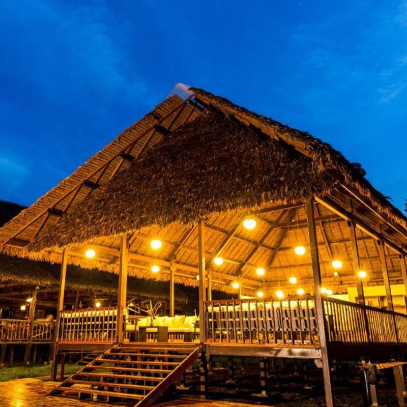 El crepúsculo desciende temprano en la jungla. Bajo la espesa cubierta arbórea de la selva tropical, la oscuridad cae rápidamente, cuando la luz ya no puede deslizarse por el follaje. Ahora, cuando la tarde se convierte en noche, estás a punto de ver una de las puestas de sol más espectaculares del mundo. El Crucero al atardecer flota por el ancho río, innumerables colores naranjas y rosas que se reflejan en el agua en hermosos patrones.